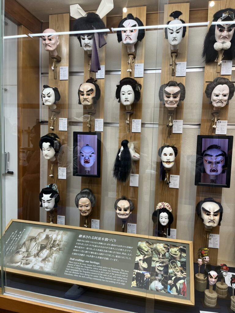 徳島には人形師が今も30人くらいはいて、文楽座を始め、全国の人形の修理なども徳島で請け負っているそうです。また演じている地域グループ(義太夫会や人形座というらしい)もたくさんいる模様。もともと人形遣いは淡路島で、人形を作るのが徳島、という棲み分けだったようですが、徳島では農村部でお祭りなどの時に自分たちで演じる、という風になっていったようですね。